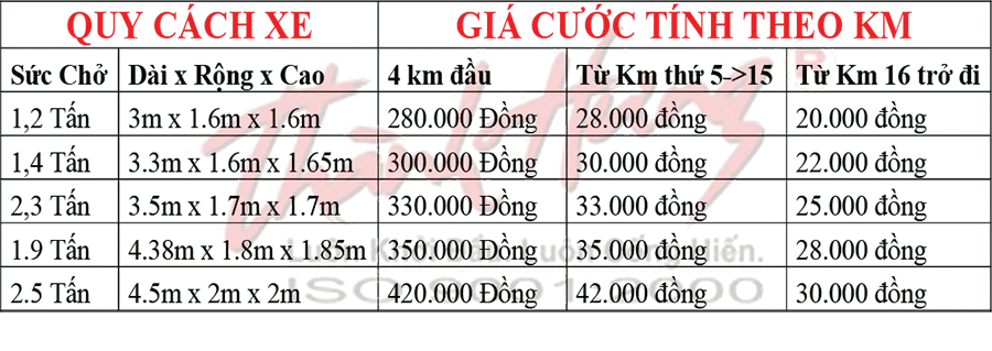 1.Giá cước thuê xe taxi tải chuyển nhà tphcm