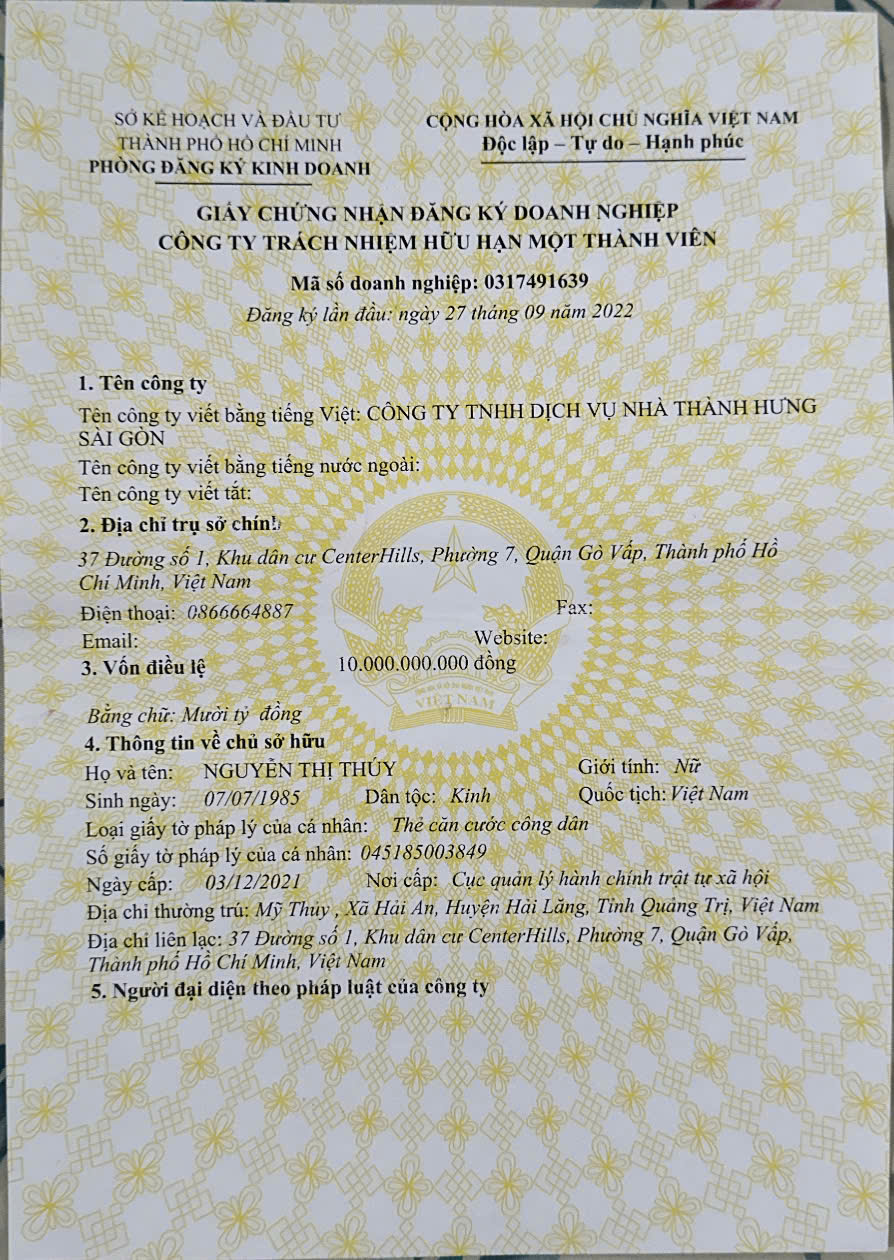 CÔNG TY TNHH DỊCH VỤ NHÀ THÀNH HƯNG SÀI GÒN