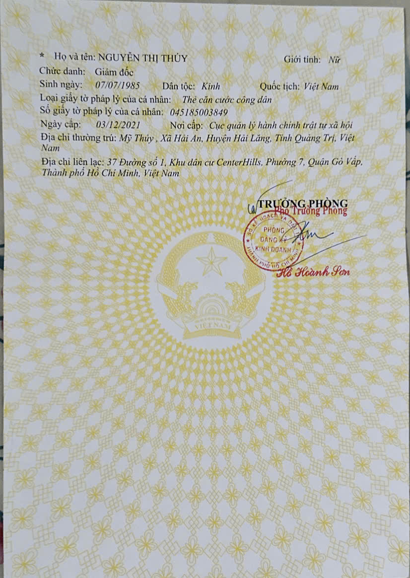 Địa chỉ thuế: 37 Đường số 1, Khu dân cư CenterHills, Phường Hạnh Thông, TP Hồ Chí Minh, Việt Nam